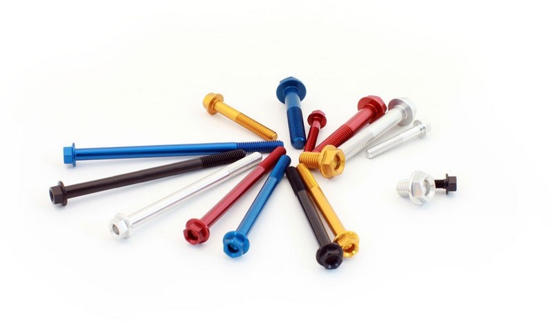 No es solo cuestión de estética (que también), es cuestión de detalle. La tornillería de ergal es más ligera y resistente que la de acero convencional.