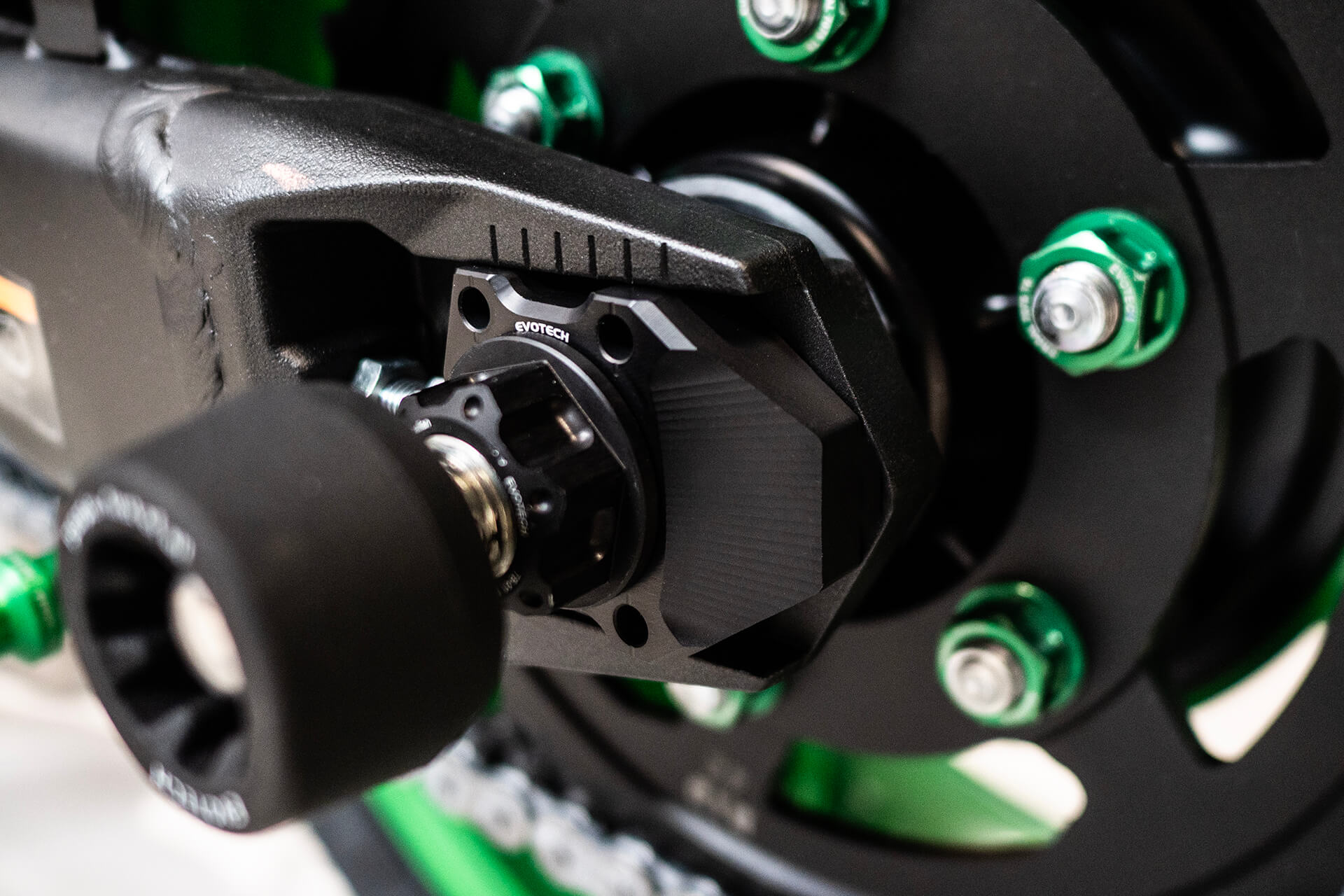 Tuercas de corona y Tensores de cadena: El detalle definitivo en la transmisión. Porque sí, hasta la parte trasera de tu moto merece brillar.