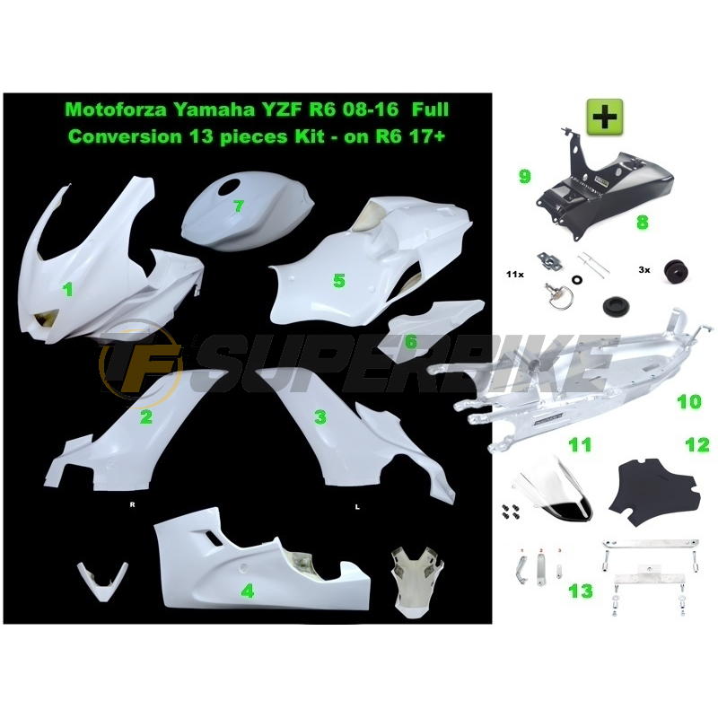 MOTOFORZA es la empresa líder a nivel europeo de fabricación de accesorios de fibra de vidrio y carbono para moto desde 1991 y te presenta su kit de trasformación para convertir la Yamaha R6R 2006-2007 en la nueva Yamaha R6 2017-2025.